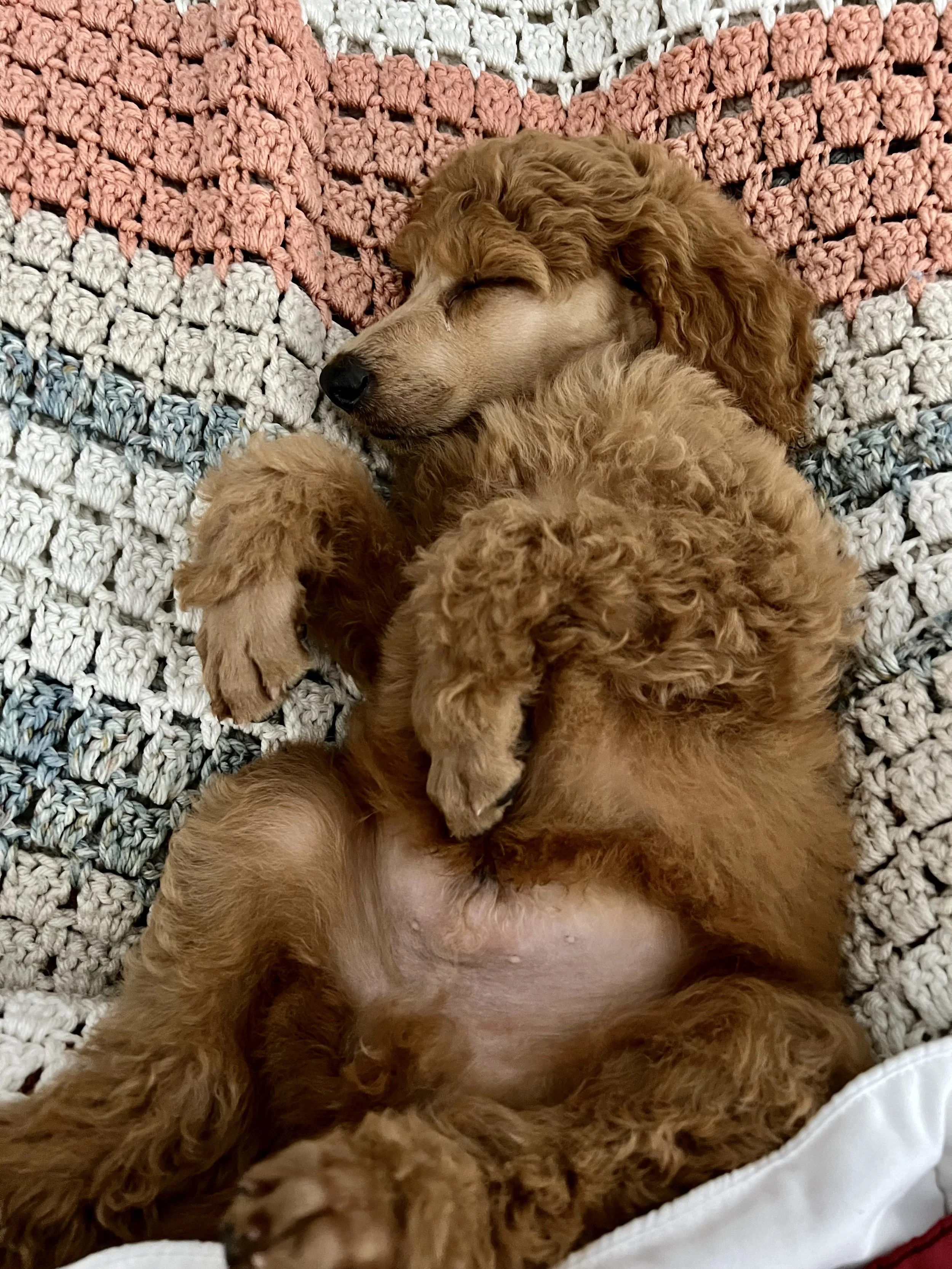 In our home, poodles are not just wonderful companions to us humans—they’re also fantastic at getting along with other animals. Whether it’s big dogs, small dogs, or even our cats, chickens, and cows, our poodles have a friendly and adaptable nature. They’re social butterflies, always ready to play or just hang out calmly with their furry buddies.